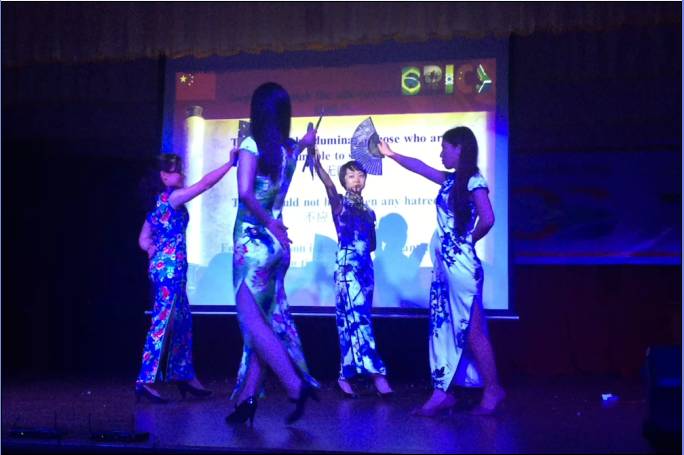 19日,金砖五国全体师生前往了主办院校位于印度西部海滨城市科钦的校区,在当晚的文化演出中,公司四位美女学员用“中国扇子舞”再次向外国友人展现了博大精深的中华传统文化,更为激动人心的是,我们巧妙引入的中华文化有奖问答环节,吸引了众多外国师生的积极参与,竞猜声此起彼伏,欢呼声高潮迭起。