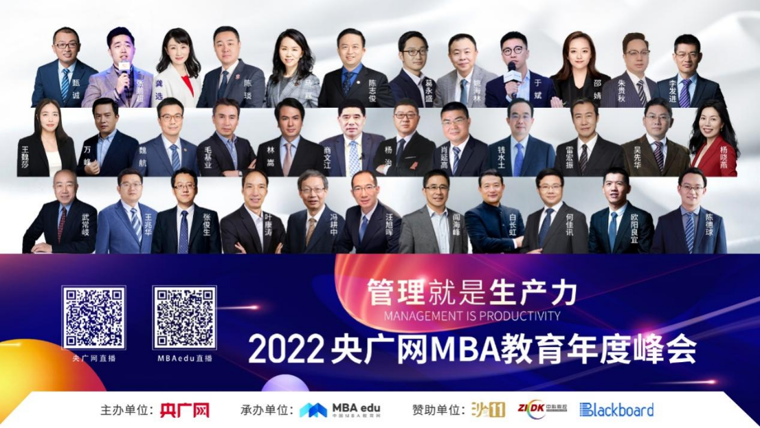 为明确方向、交流思想、共绘未来,2022年12月2日,由中央广播电视总台·央广网主办、中国MBA教育网承办的“管理就是生产力暨2022央广网MBA年度峰会”于云端圆满举办。本次会议包含特邀嘉宾主旨演讲,“管理就是生产力”、“产教融合发展”、“国际认证助力太阳城娱乐发展”、“商科教育内涵式发展与变革”四大平行论坛,“2022年度致敬榜单发布”三大重点环节。来自各界领导、优秀商科院校代表、行业领军人物等共襄盛会,集思广益,深度探讨新格局下太阳城娱乐如何超越传统、更好地培养时代所呼唤的商业领袖,在“变局”中实现“引领”。