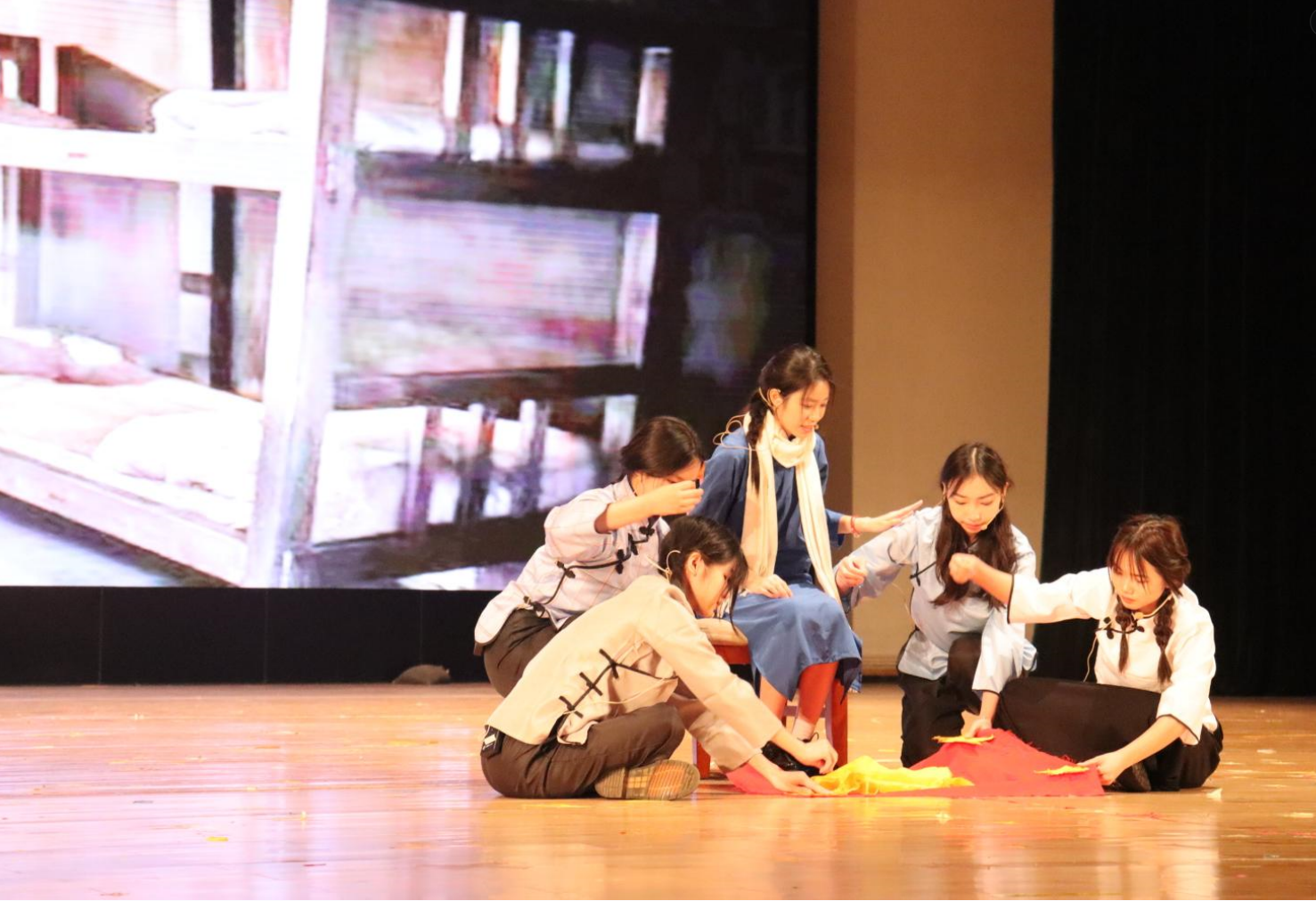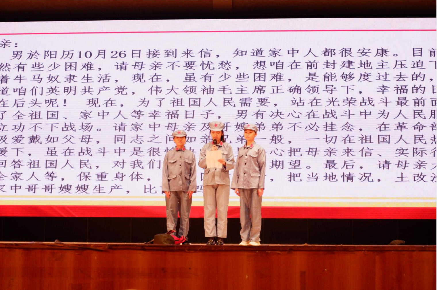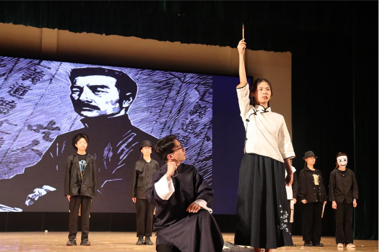 大赛融入了朗诵、话剧、书法、歌曲、舞蹈、诗词等多种形式,灵动清新的演绎让红色经典文化扣人心弦。从“横眉冷对千夫指,俯首甘为孺子牛”的鲁迅先生,到抗美援朝战争中“最可爱的人”;从大义凛然,视死如归的革命烈士,到疫情肆虐时期奋不顾身的逆行者;渣滓洞监狱中,一面代表着信仰的五星红旗乘风扬起;滚烫的枪眼,比之更热烈的是黄继光烈士的红心。同学们用极具感染力的表演,向革命先烈、民族英雄、抗疫一线的医护人员等时代英雄表达衷心的敬意!真挚的朗诵,真情的演绎,深深打动了现场的观众。
