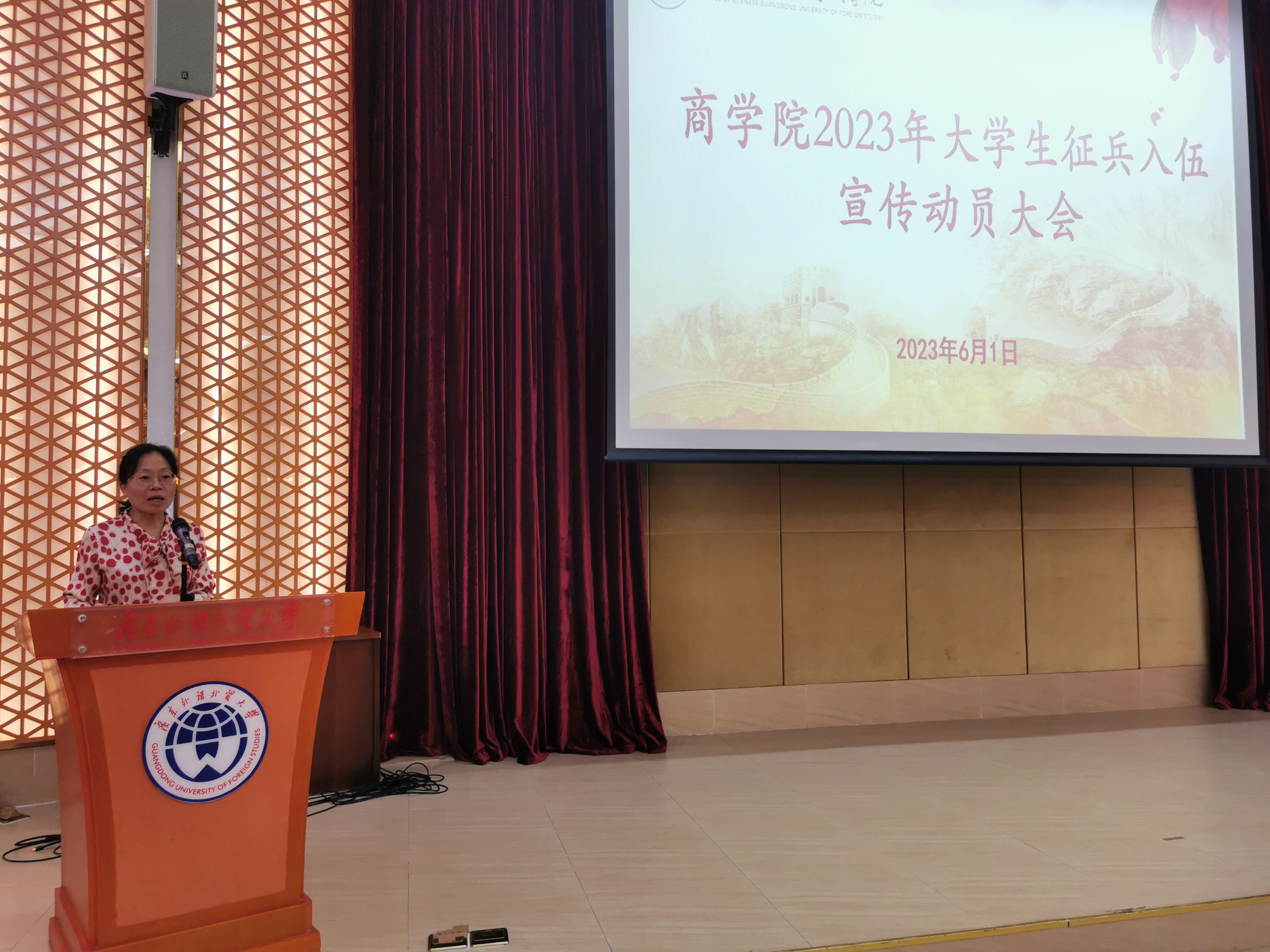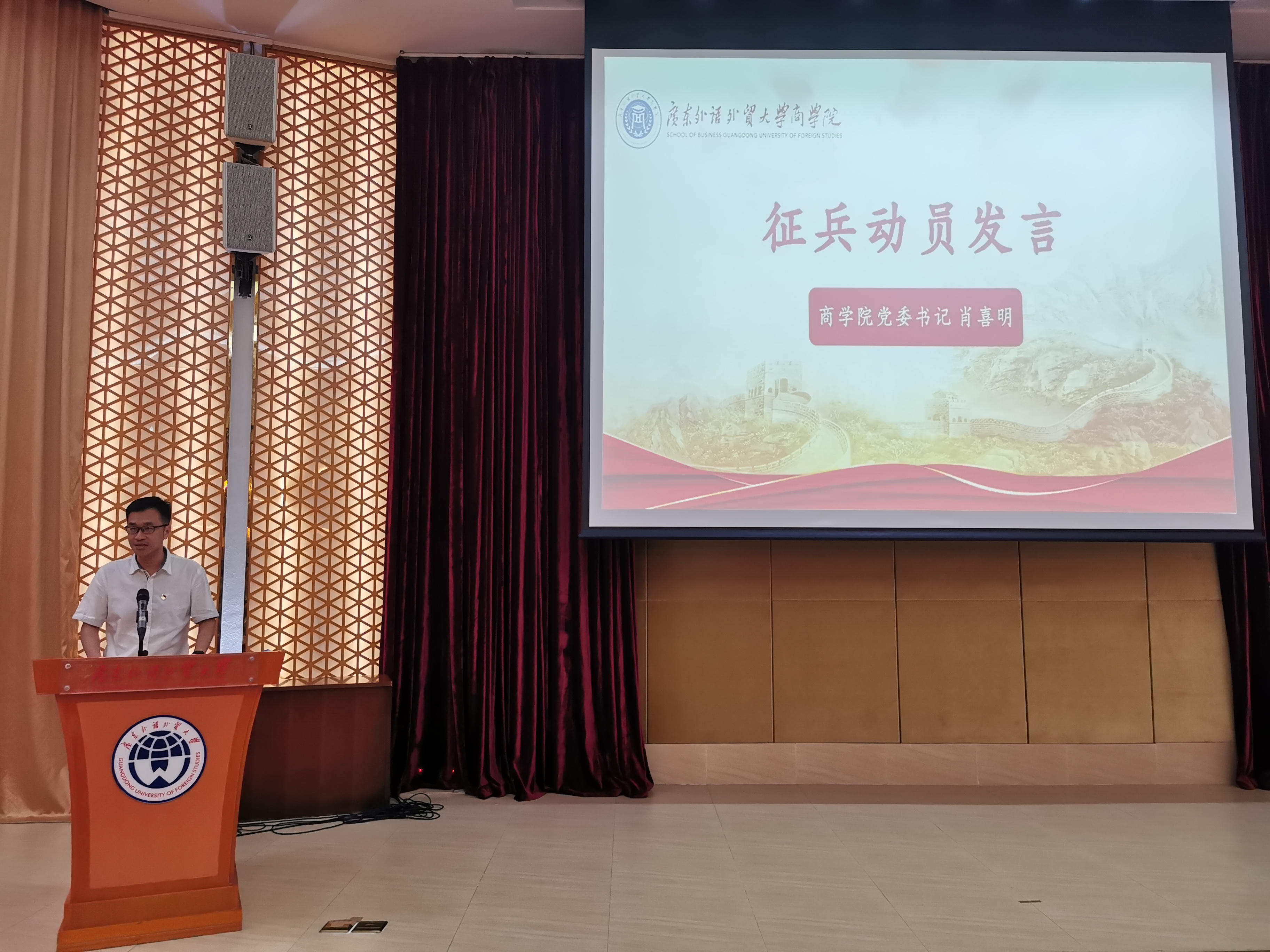 首先,肖喜明作征兵动员讲话,他号召同学们积极响应国家号召,树立立志报国成才的远大理想。他强调“强国必须强军,军强才能国安”,实现我国的强军目标需要每一个有志青年的积极参与。老员工入伍能够为我国军事力量注入新鲜血液,有助于我国的国防和军事建设。他激励更多的商院学子积极报名入伍,让青春在军营闪光,让梦想从军营起航。