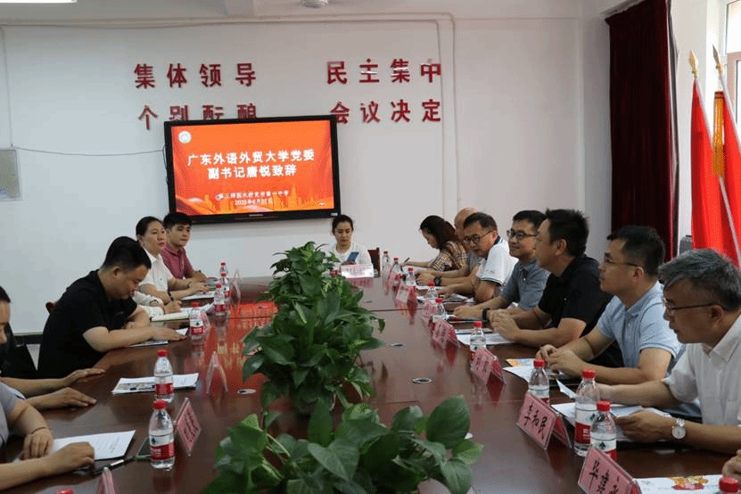 首先,刘青对广外校院领导的到来表示热烈的欢迎,并就项目的基本情况向与会成员进行了简短的介绍。接着,王涛对三师一中的公司概况和发展历程进行了介绍,并对广外青燕研支团的工作表示了高度肯定。