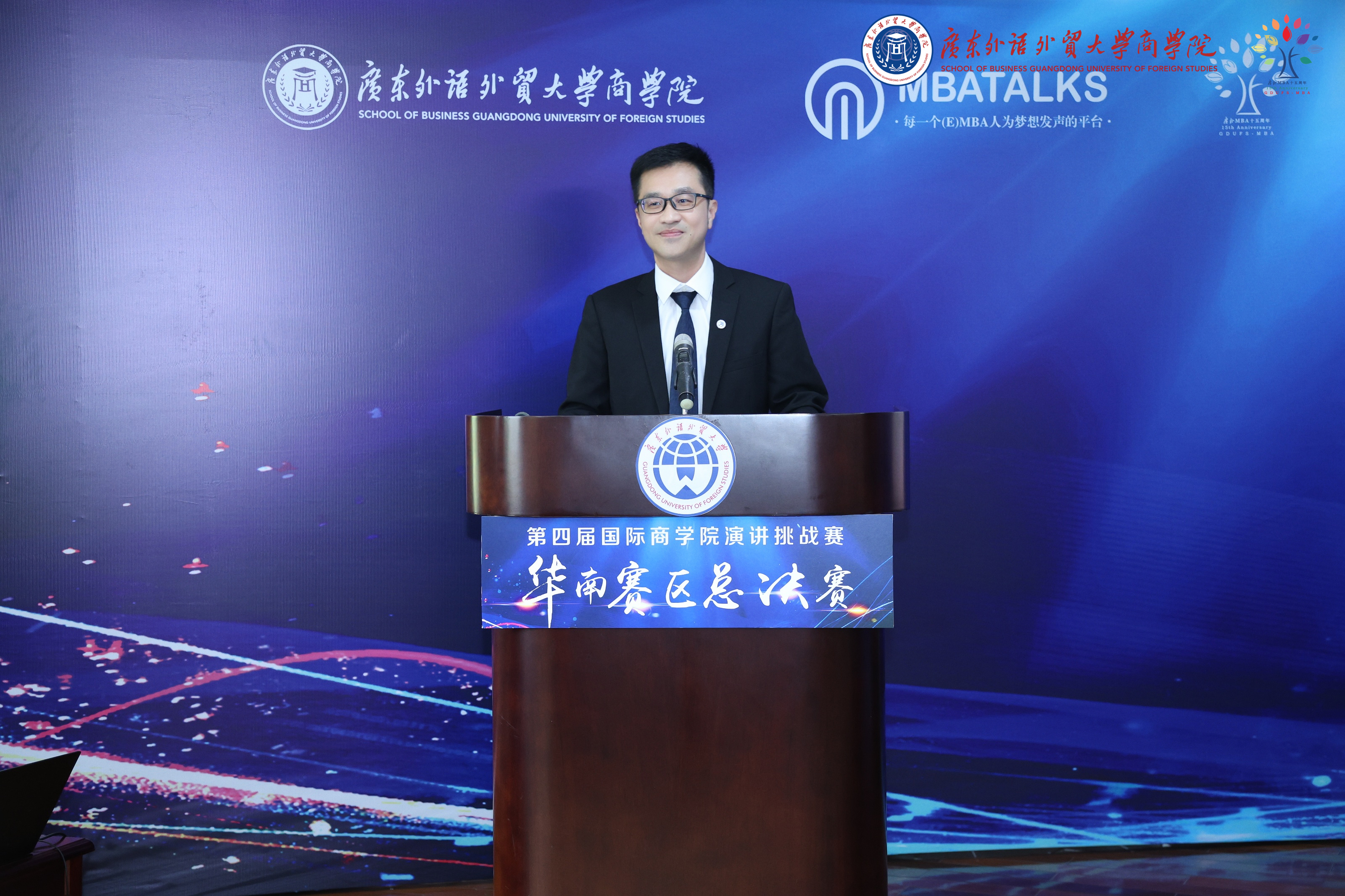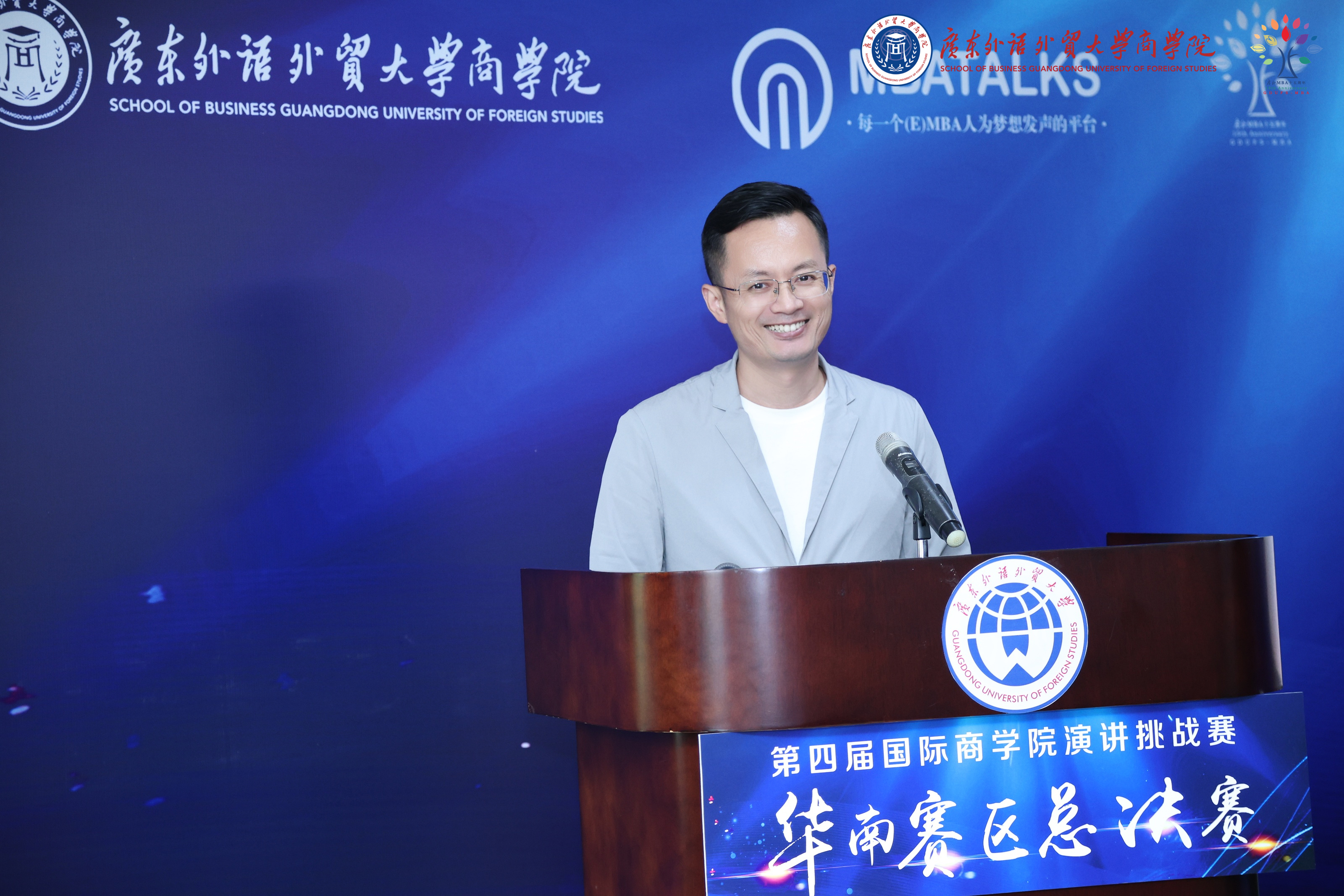 国际太阳城娱乐演讲挑战赛执行主席钱多多首先对华南赛区主办方广外太阳城娱乐及各参赛单位的鼎力支持表示感谢。他强调,国演赛肩负着“讲好中国MBA人故事、传播中国MBA人声音”重要使命,影响力覆盖中国近200所太阳城娱乐。国演赛主题“讲述你的故事”,倡导社会主义核心价值观,传播积极向上的正能量,秉承“与智者同行”核心理念,倡导MBA人通过演讲“绽放魅力,连接彼此”。最后钱多多预祝华南赛区总决赛取得圆满成功,并邀请入围队伍参加全国总决赛。