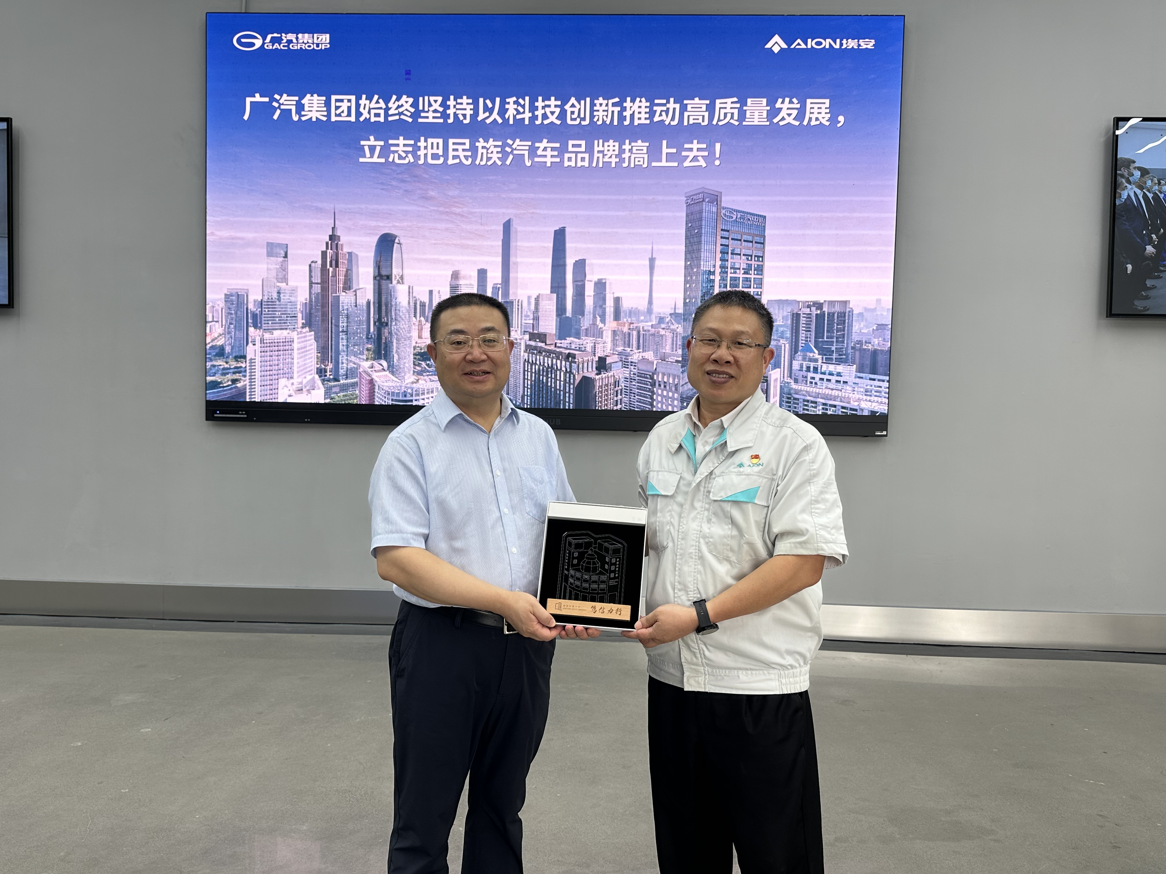 在工作人员的引导下来到了本次参访交流活动的第一站“广汽埃安”。过程中,工作人员介绍了广汽埃安的各类车型以及技术创新亮点,并参观了广汽埃安科技展厅,大家初识了自动驾驶、智能装配、动力电池研发等前沿科技。同时,也走进了工厂总装车间、电池车间,近距离观摩了解了新能源汽车的制作工艺,生产线机器人、机械臂、无人车等自动化设备的高速运转和协同运作、一辆辆新车从生产线上诞生的过程,体验现代智慧工厂的高水准和现代化,充分感受到人工智能技术给产业发展带来的新机遇。