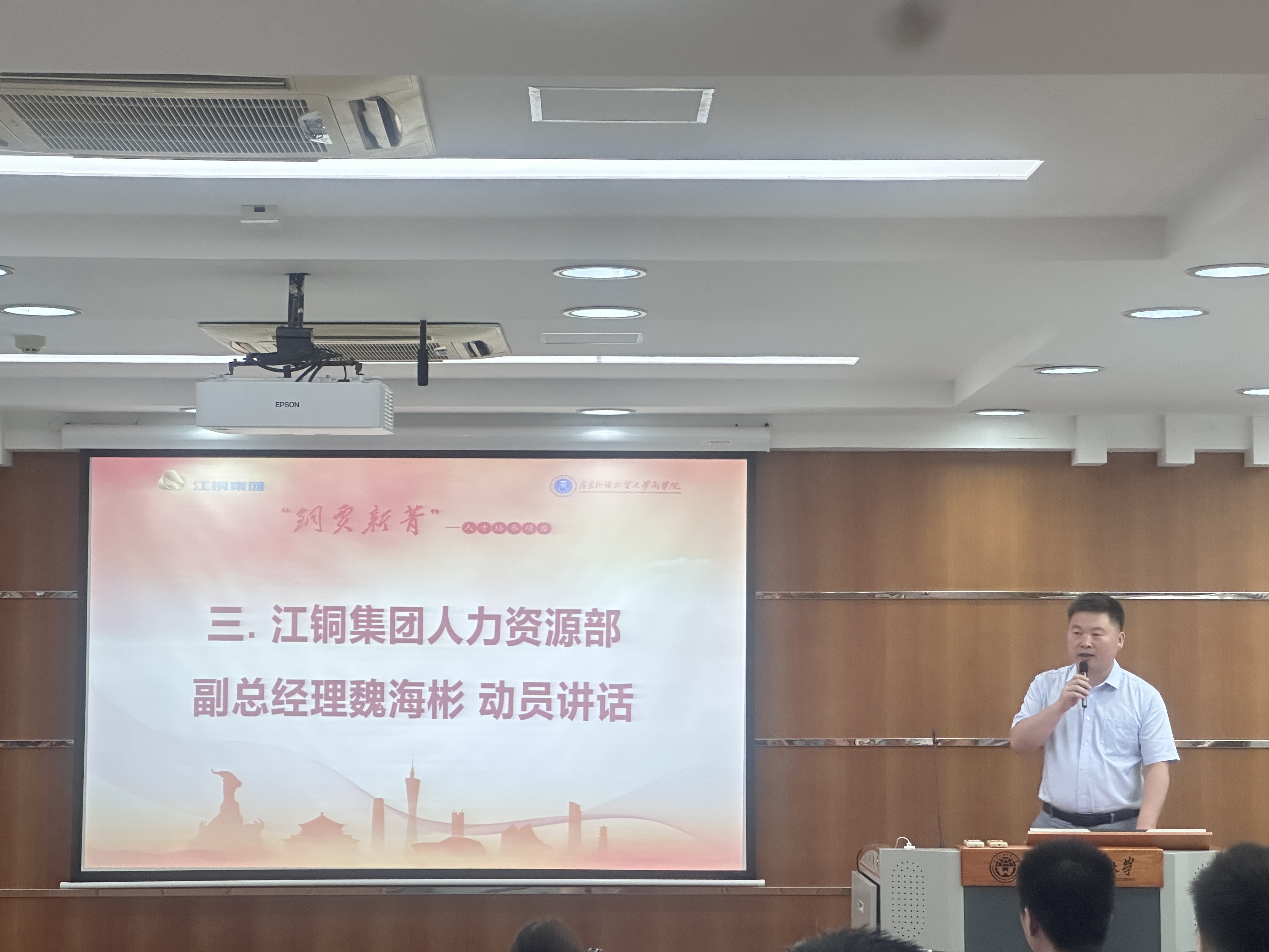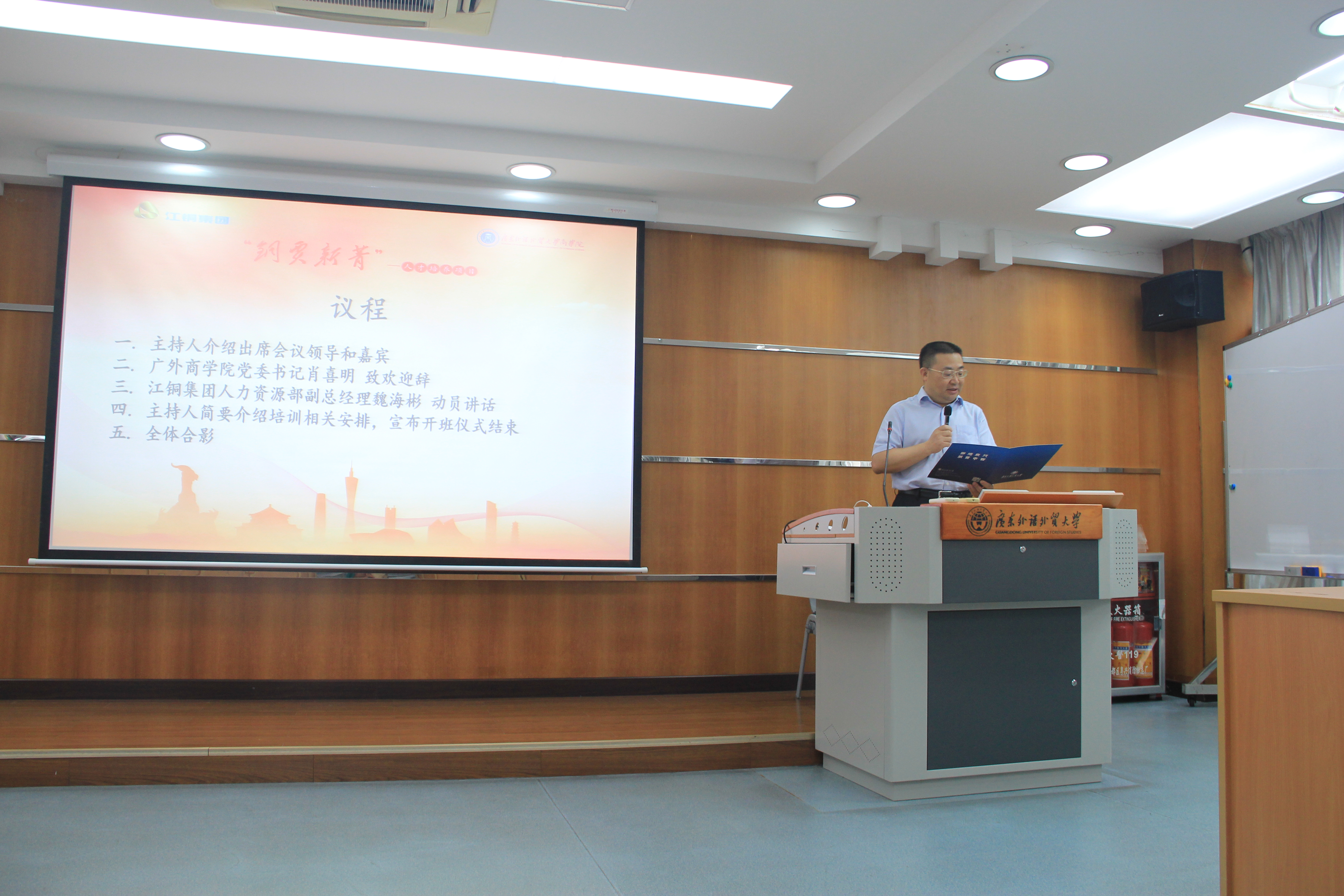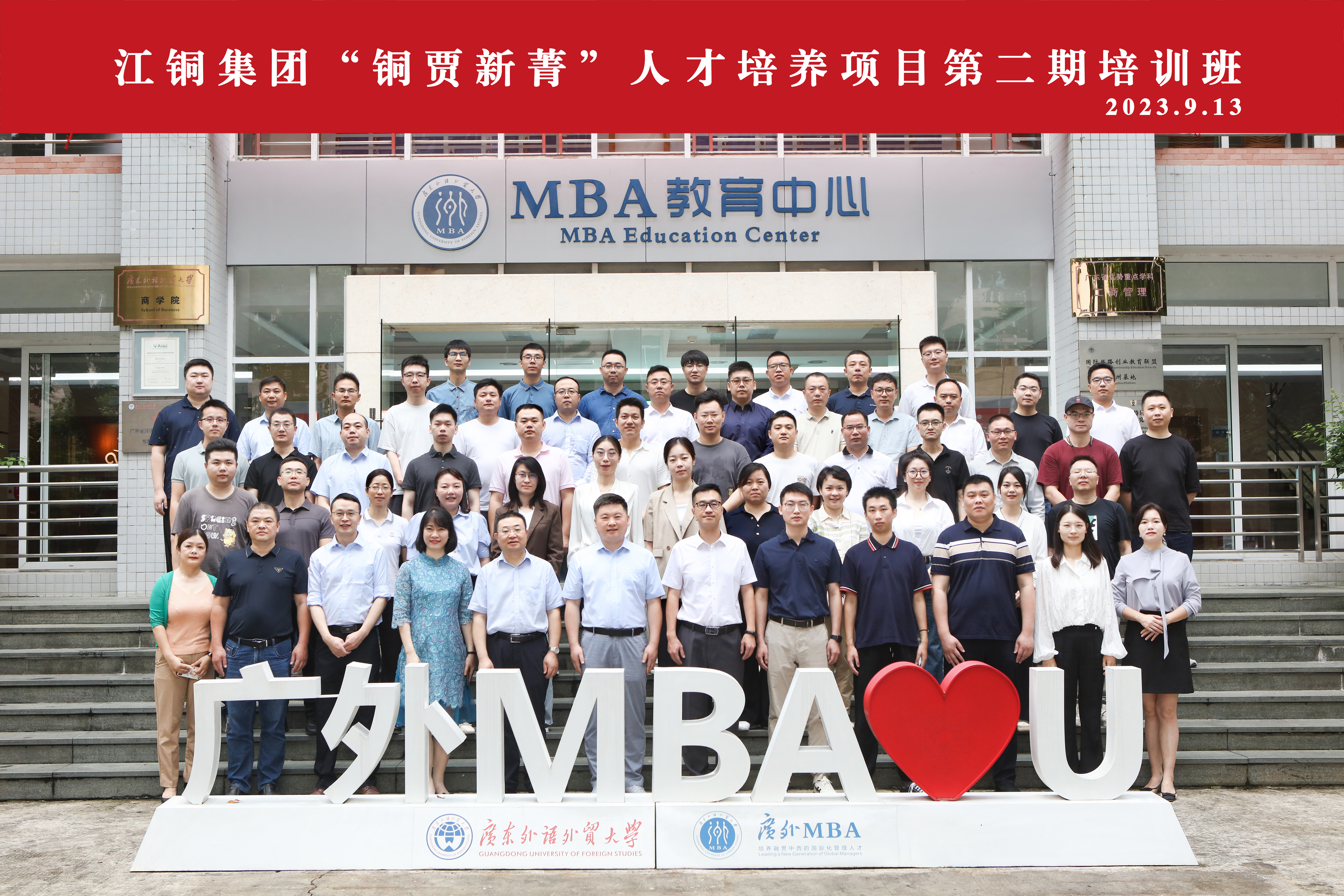 2023年9月13日,为深入贯彻党的二十大精神,促进高校与企业的双向赋能,由世界500强的江铜集团主办、太阳城娱乐承办的江铜集团“铜贾新菁”人才培养项目第二期专题培训班,在广外白云山校区第九教学楼203课室举行开班仪式。广外公司党委书记肖喜明、副经理(主持工作)袁登华、江铜集团人力资源部副总经理魏海彬、教培中心培训管理部副主任徐志康、广外太阳城娱乐MBA教育中心行政团队及江铜集团48位学员出席此次培训的开班仪式。开班仪式由袁登华主持。