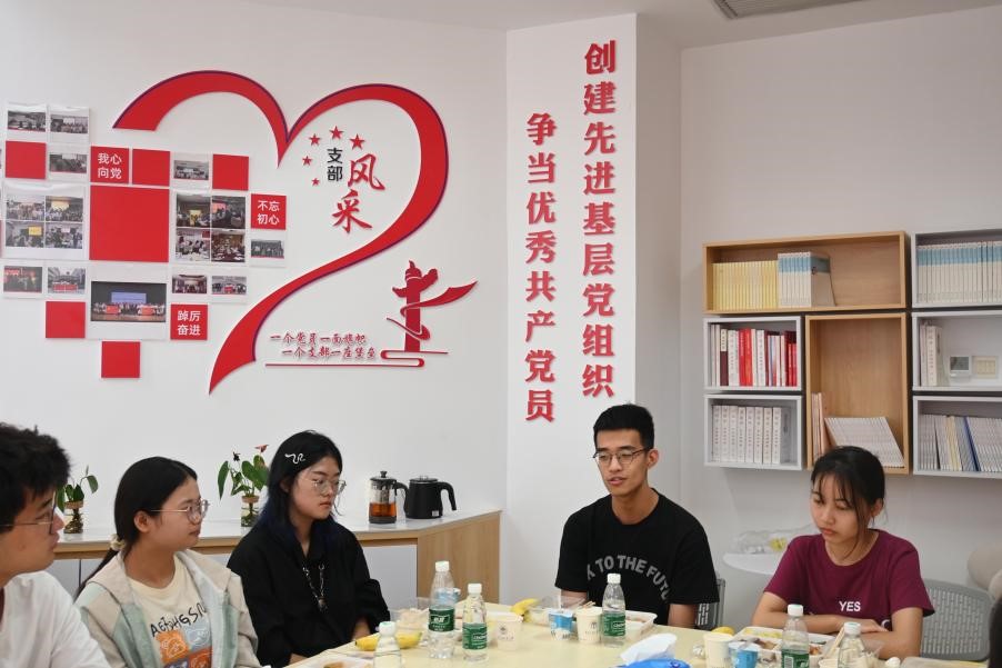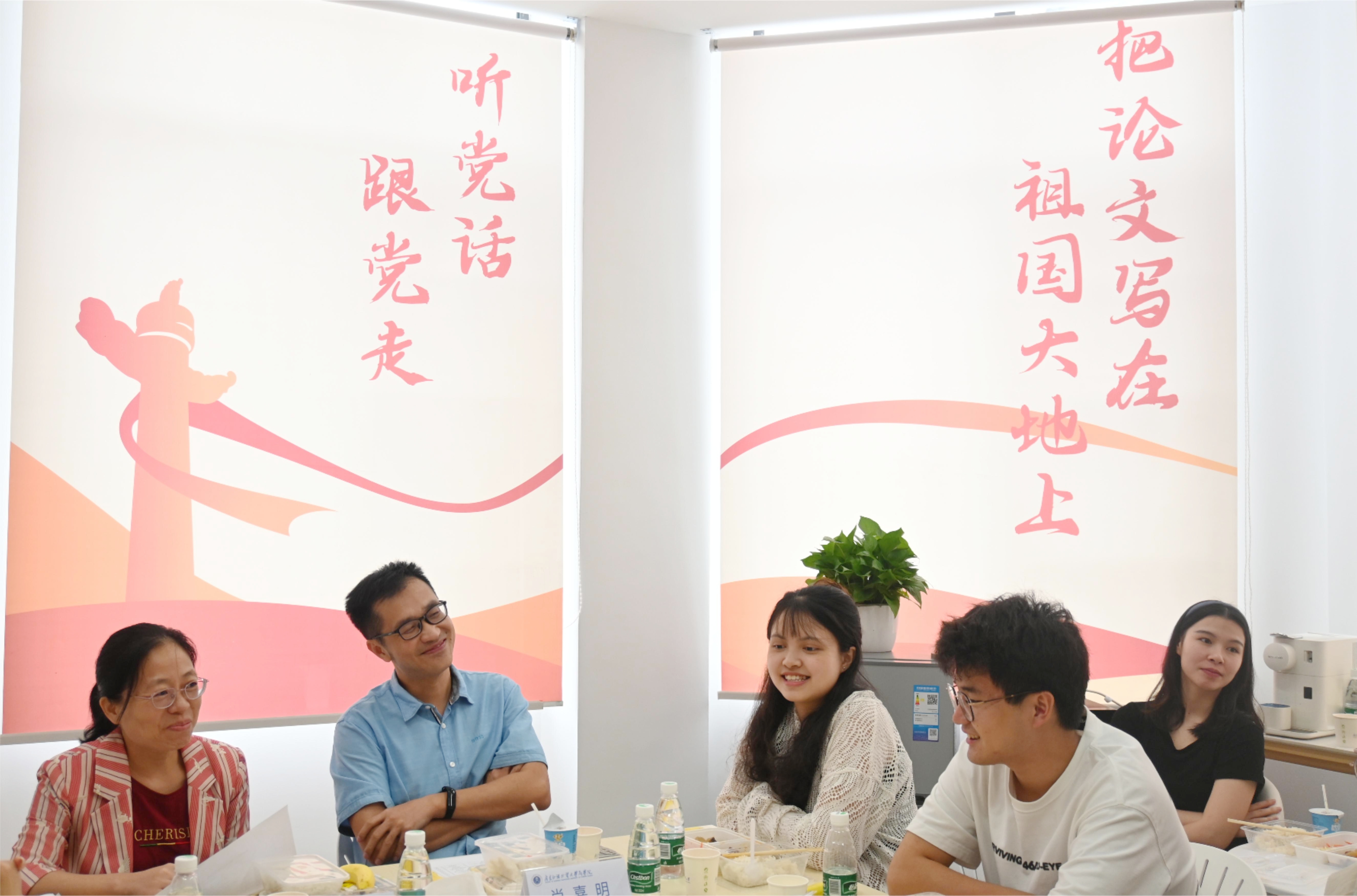 午餐会上大家边吃边聊,氛围轻松愉快。同学们围绕自己的学习生活、个人规划、公司建设等话题进行深入交流。马丽娅提出了自己作为大一新生的迷茫和焦虑,与会老师和学长学姐们暖心鼓励其调整心态,从小事做起,在过程中明确目标、提高能力;刘丰源、许馨予就身边同学提到较多的宿舍设施、用水用电等问题提出了意见与建议;王昭程和耿智分享了自己担任员工朋辈导师的经历和收获,提出了班级凝聚力建设等方面的疑惑;罗蓉琪提到了毕业班同学在求职就业中遇到的困难,希望公司能够在教学中融入关于专业学习和就业岗位适配性的介绍,提供更有针对性的职业生涯规划指导。肖喜明和沈长霞逐一回应并解答了同学们提出的问题,勉励同学们利用好公司和公司的资源,努力学好专业知识,在实践中提升本领,提前做好生涯规划,找准未来发展方向,努力成长为堪当民族复兴重任的时代新人。