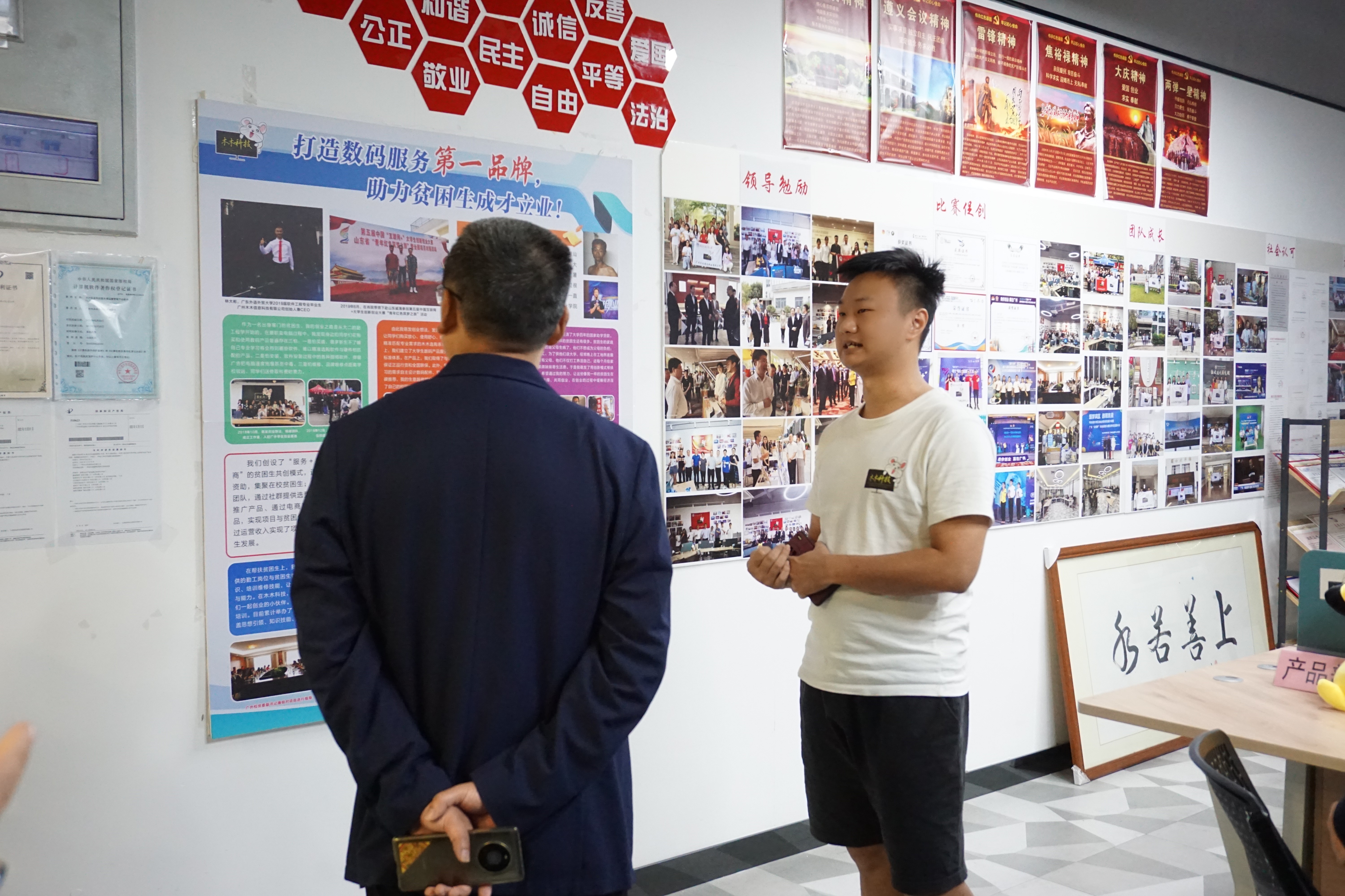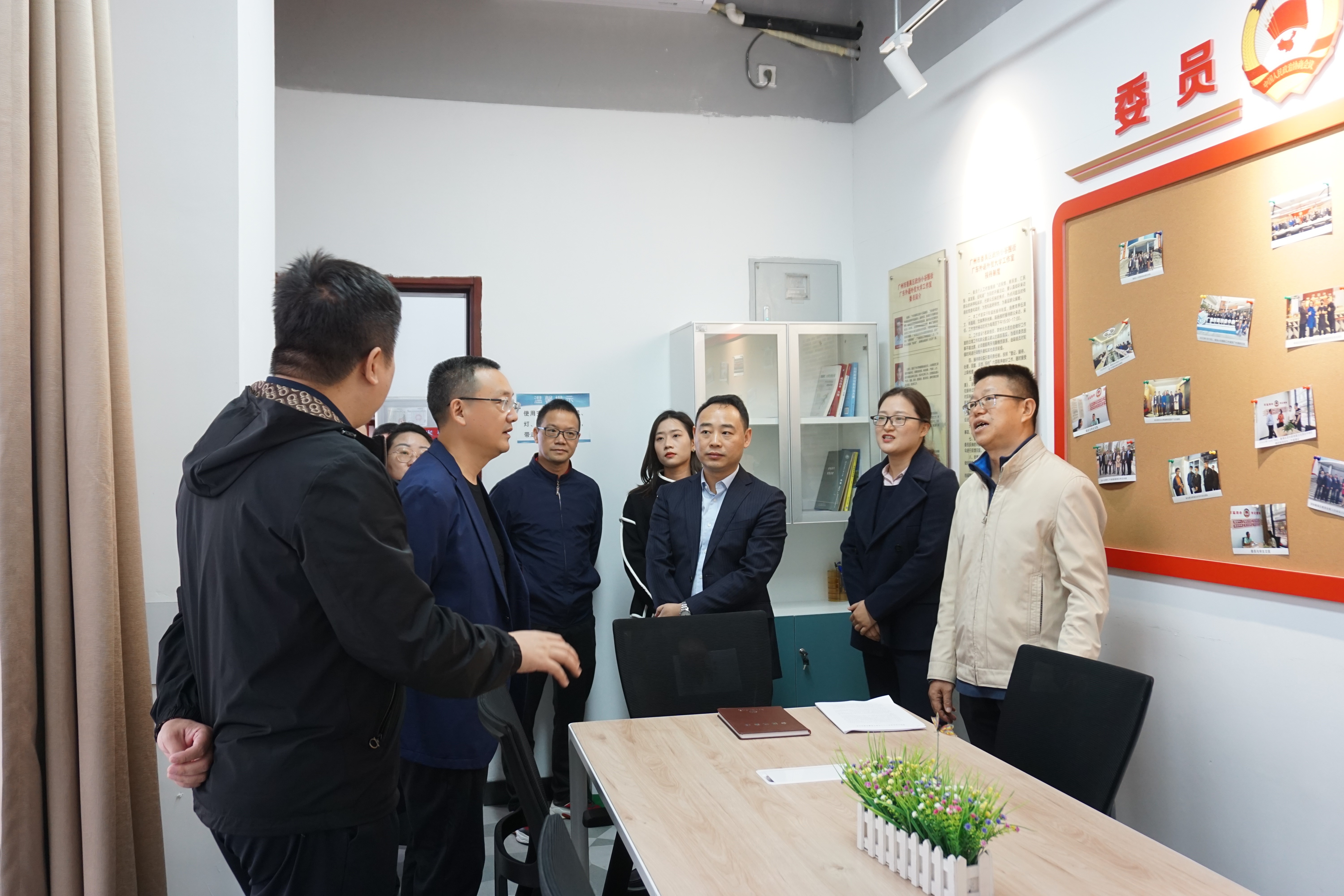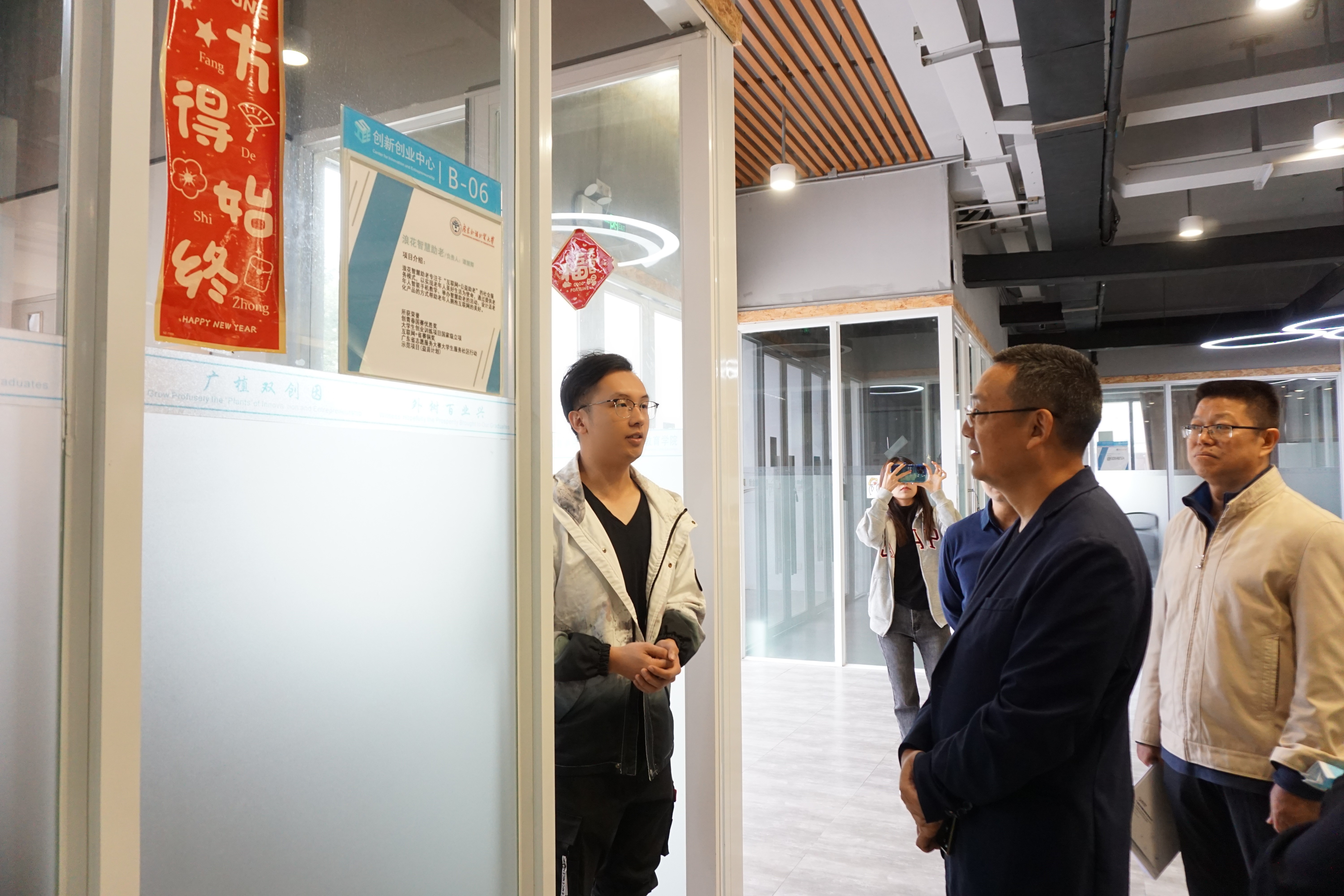曹婷婷带领调研组一行参观国家级实践基地各功能区域、走访了入驻的员工团队办公室,与员工创业团队“浪花智慧助老”“木木科技”亲切交流,详细了解员工项目的发展,倾听师生民意,对公司学子敢闯敢创、抓住用户痛点需求的精神和能力表示赞赏。